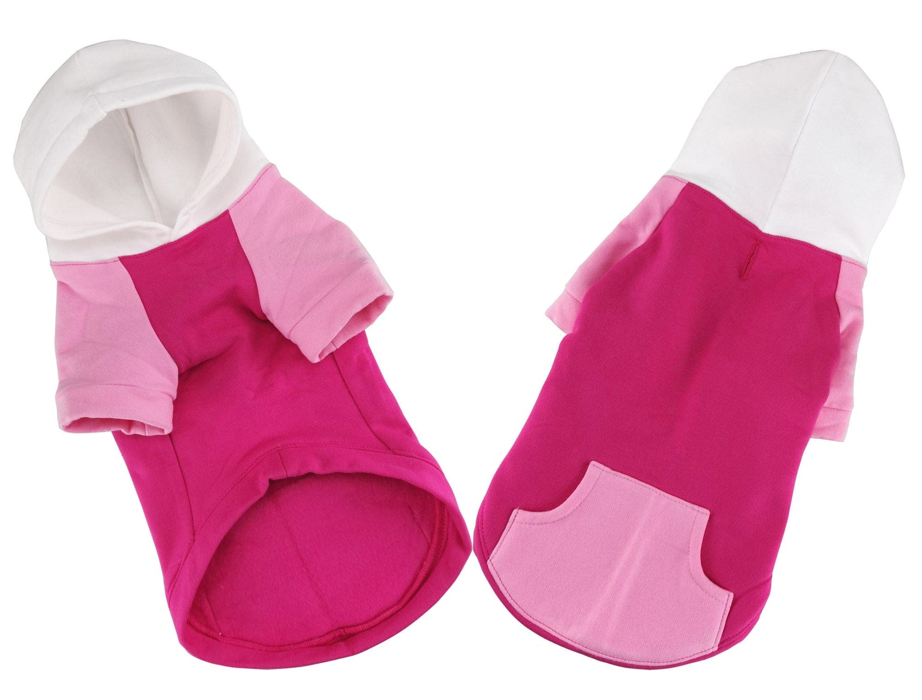 The Into Pink Pet Hoodie combines practicality with whimsical artsy style. Luxurious "Mod-Dog" Hoodie features bold color-block design in premium 95% Cotton, 5% Spandex fabric. Thoughtfully crafted with stretch fit, kangaroo pocket, leash access hole, and high-cut tummy. The thicker, human-grade material provides exceptional warmth while accommodating all body types.